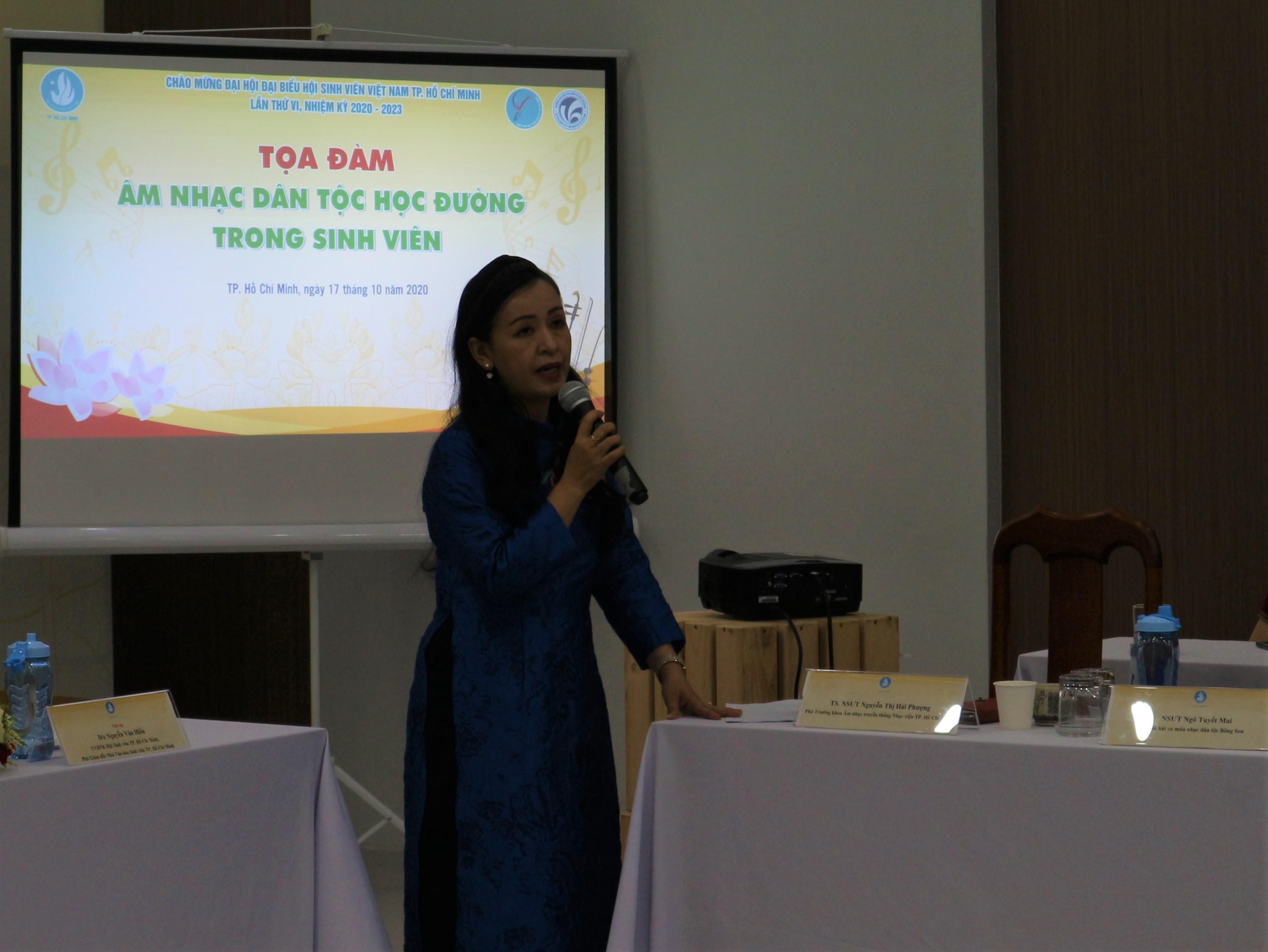 NSƯT Hải Phượng đưa ra những ý kiến, đóng góp để âm nhạc dân tộc đến gần hơn với giới trẻ