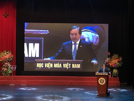 Phát biểu tại Lễ kỷ niệm, Thứ trưởng Tạ Quang Đông đã ghi nhận, biểu dương những nỗ lực của thầy và trò Học viện Múa Việt Nam suốt 60 năm qua trong công cuộc đóng góp vào sự phát triển văn hóa, nghệ thuật của nước nhà. Theo Thứ trưởng, trải qua 60 năm xây dựng và phát triển, một chặng đường với không ít khó khăn, thử thách nhưng cũng mang nhiều dấu ấn, Học viện Múa Việt Nam đã thực hiện tốt trọng trách được giao và ngày càng khẳng định vị thế của một trung tâm đào tạo những nhà quản lý, các giảng viên, diễn viên, biên đạo múa cho đất nước và một số nước trong khu vực, nhiều người được phong tặng danh hiệu cao quý như NSND, NSƯT, NGND, NGƯT và đóng góp không nhỏ trong lịch sử hình thành, phát triển của ngành múa Việt Nam.