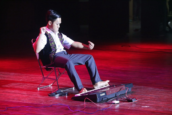 Tiết mục độc tấu organ bằng chân “Tiếng chày trên sóc Bom Bo” của Trần Văn Linh (đoàn Bình Phước)