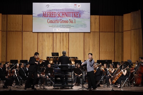 Tại buổi biểu diễn này, hai nghệ sĩ violon tên tuổi sẽ chơi một trong những bản Concerto grosso đương đại hay nhất của cuối thế kỷ XX được viết bởi cố nhạc sĩ người Nga, gốc Đức Alfred Schnittke. Tác phẩm này được viết năm 1976 tặng cho huyền thoại violon thế giới người Nga - Latvia, gốc Đức Gidon Kremer và nghệ sĩ violon Tatiana Grindenko (người đoạt giải thưởng Tchaikovsky năm 1970).