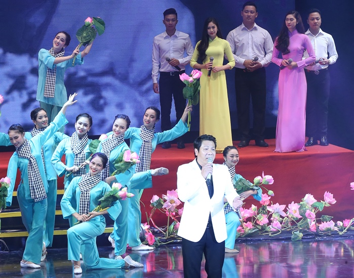 Nghệ sĩ Quốc Hưng trong chương trình “Quà tháng 5 dâng Người” năm 2017 Ảnh: Tr. Huấn