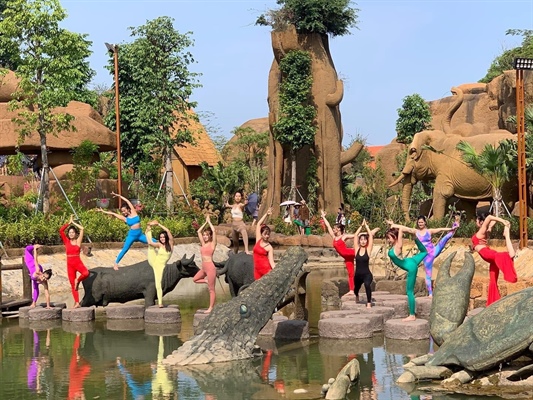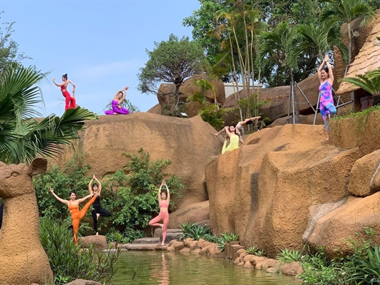 Các thí sinh tham gia cuộc thi Nữ hoàng Yoga Việt Nam biểu diễn nghệ thuật – Yoga tại khu du lịch Tuần Châu, thành phố Hạ Long – Quảng Ninh (Ảnh: BTC)