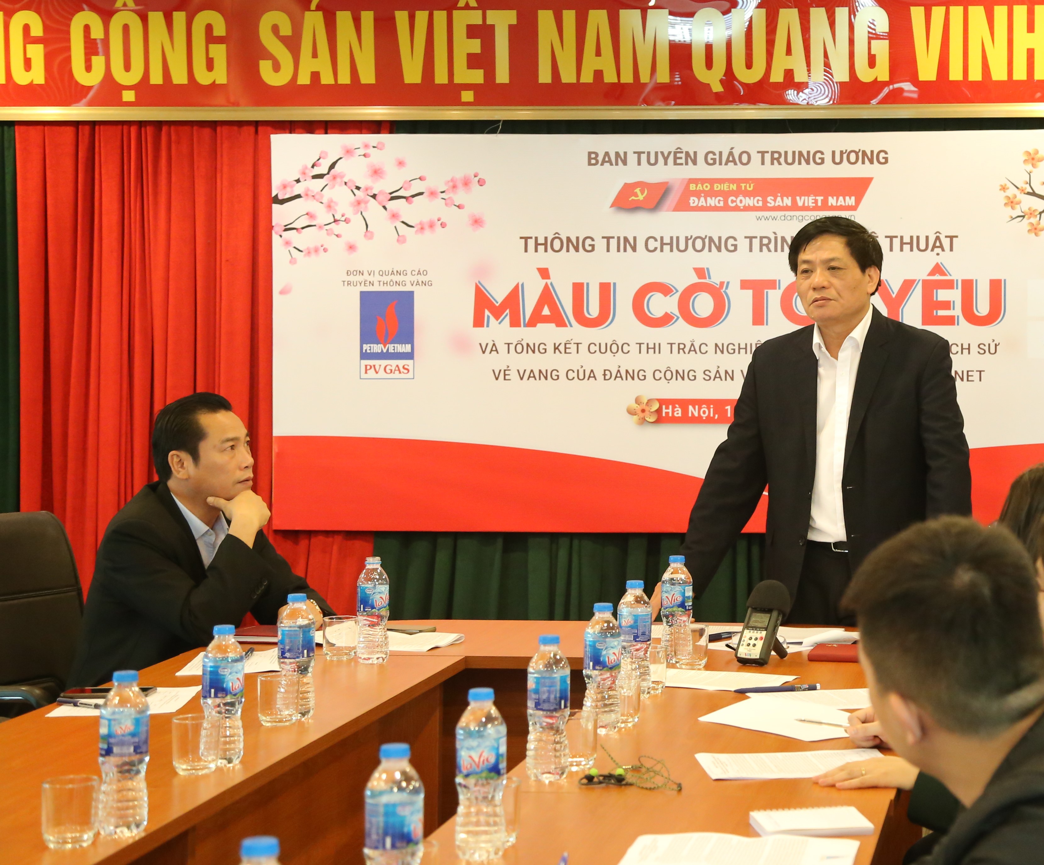 VHO-Chiều ngày 15.1.2020 tại Báo điện tử Đảng Cộng sản Việt Nam đã diễn ra buổi họp thông tin về chương trình nghệ thuật “Màu cờ tôi yêu” và Tổng kết Cuộc thi trắc nghiệm “Tìm hiểu 90 năm lịch sử vẻ vang của Đảng Cộng sản Việt Nam” trên mạng Vcnet. Chương trình có sự đồng hành của Tổng Công ty khí Việt Nam – CTCP (PV GAS).