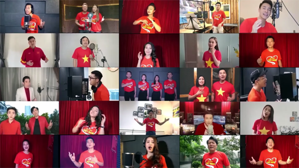 Các nghệ sĩ và lực lượng y bác sĩ, chiến sĩ tham gia MV Tự hào Việt Nam để cổ động phòng, chống Covid-19