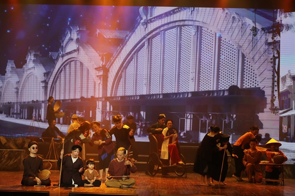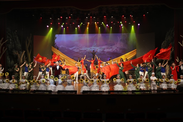 "Vang mãi lời hịch non sông" được dàn dựng với sân khấu thiết kế công phu