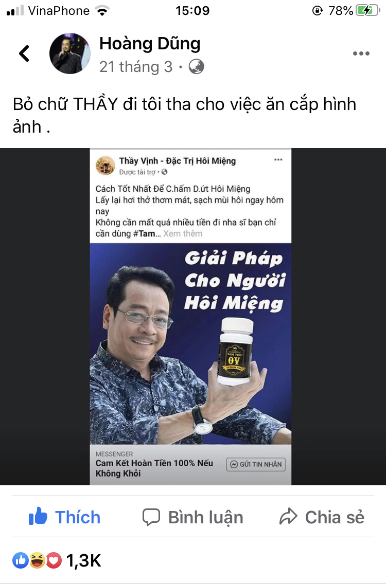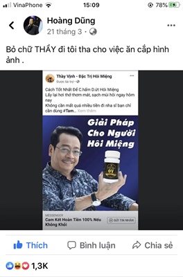 NSND Hoàng Dũng post hình ảnh quảng cáo ăn cắp hình ảnh của ông lên facebook