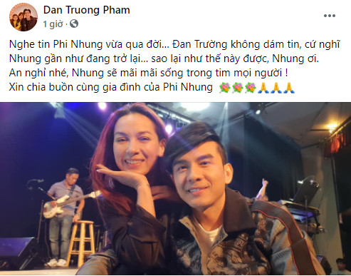 Thông tin bệnh tình Phi Nhung trở nặng khiến khán giả quan tâm, lo lắng. Nhiều nghệ sĩ Việt tâm sự, nhân dịp lễ Giỗ Tổ nghiệp sân khấu vừa qua, họ đã dành lời cầu xin mỗi năm chỉ có một lần này cho Phi Nhung. Cũng chính vì thế, khi nghe tin nữ ca sĩ qua đời, nhiều khán giả và giới nghệ sĩ đã không khỏi bàng hoàng. MC Quỳnh Hoa chia sẻ trên trang cá nhân: “Không thể tin nổi! Lúc team nghệ sĩ mới tham gia hoạt động tình nguyện, Nhung đã định gia nhập nhóm Tình nguyện viên nghệ sĩ nhưng vì sợ nguy hiểm đến sự an toàn của các con ở nhà nên thôi! Vậy mà bây giờ Nhung lại ra đi! Đau lòng quá!”.