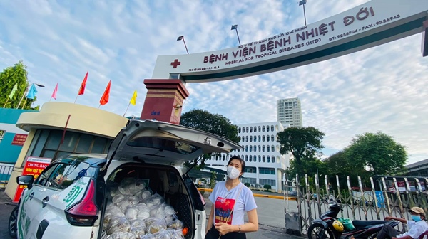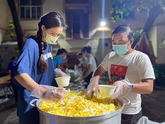 VHO - Ngày 15.6, đoàn văn nghệ sĩ tình nguyện tiếp tục công việc hỗ trợ các phần ăn đến lực lượng y bác sĩ và nhân viên Bệnh viện Bệnh Nhiệt đới. Hoa hậu Mai Phương Thúy, Hoa hậu Sinh viên Thế giới Thanh Khoa và các MC, ca sĩ, đạo diễn, diễn viên… cũng đã có mặt tham gia công tác tình nguyện.
