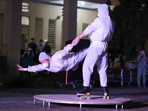 Diễn viên xiếc Hiển Phước - Thanh Hoa biểu diễn phục vũ y bác sĩ và bệnh nhân tại bệnh viện dã chiến