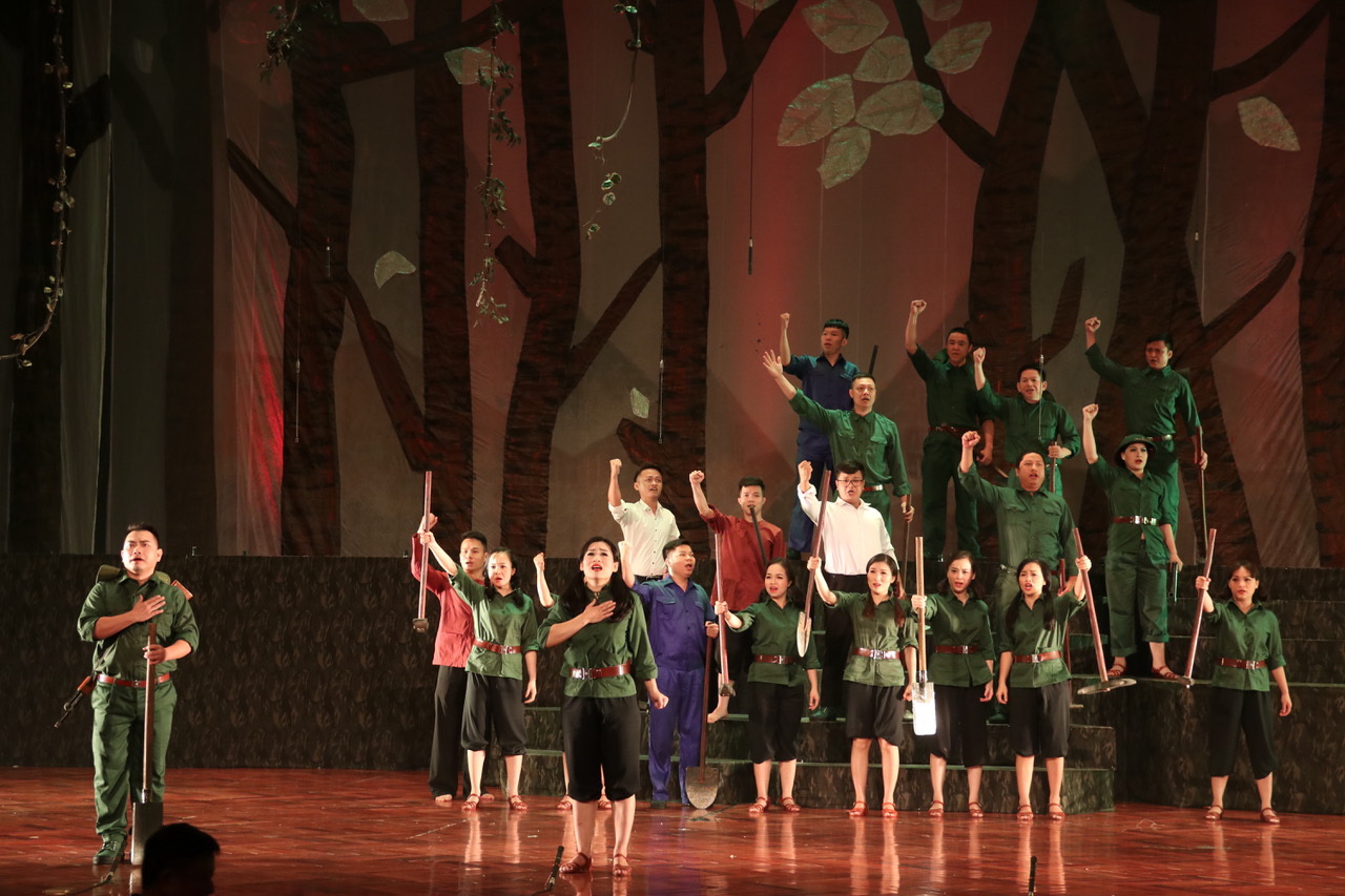 Vở Nhạc kịch “Lá đỏ” là tác phẩm hùng tráng về thanh niên xung phong, diễn xuất của các nghệ sĩ vào vai chính đã lay động người xem