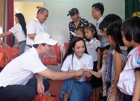Đoàn các nghệ sĩ trao quà cho trẻ em có hoàn cảnh khó khăn