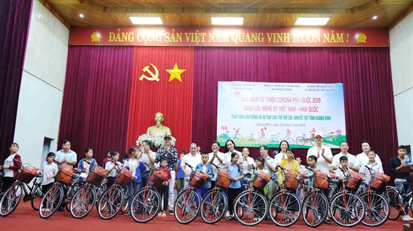 Các nghệ sĩ đã cùng nhau tặng các trẻ em nghèo và mồ côi tại huyện Quảng Trạch 30 xe đạp, mỗi xe đạp trị giá 1,7 triệu đồng. Đoàn nghệ sĩ cũng đã đến huyện Bố Trạch tặng các em nghèo và mồ côi 50 suất học bổng, mỗi suất trị giá 1,5 triệu đồng. Ngoài ra, đoàn cũng đến thăm và gửi chi phí chữa bệnh cho 5 em mắc bệnh hiểm nghèo tại Bệnh viện Cuba Quảng Bình, mỗi em 10 triệu đồng.