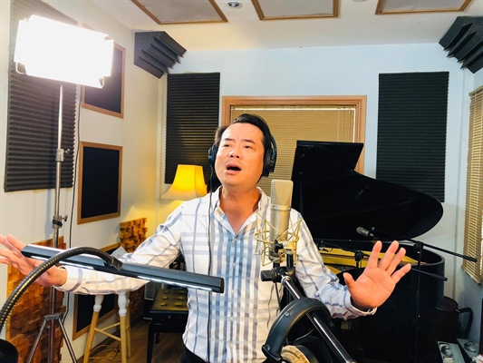 Nhạc sĩ Trịnh Xuân Hảo tại phòng thu