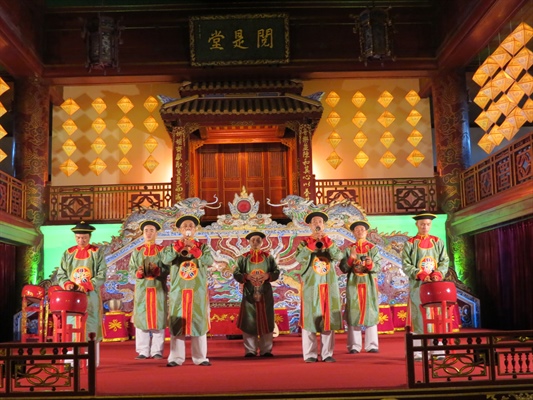 Biểu diễn Nhã nhạc cung đình Huế tại Nhà hát Duyệt Thị Đường (Khu di sản Hoàng cung Huế). Ảnh: S.Thùy