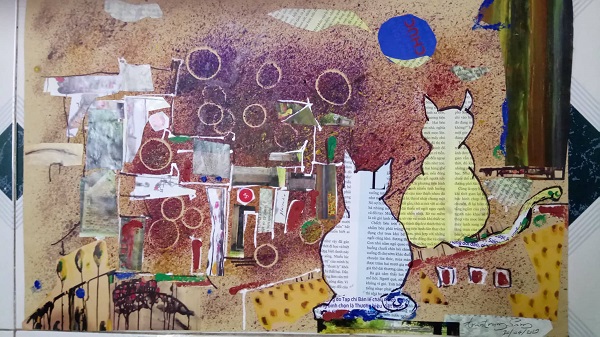 Bức tranh Mèo và trăng xanh lấy cảm hứng từ câu chuyện từ truyện ngắn Những con mèo trên mái ngói