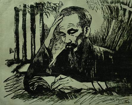 Chân dung Bác Hồ với vầng trán cao, ánh mắt sáng, chòm râu bạc, nụ cười hiền được các họa sĩ thể hiện chân thực, dung dị qua các tác phẩm: Chân dung Bác của Trần Văn Cẩn, Bác Hồ của Lê Lam, Hồ Chủ tịch của Nguyễn Thế Vinh, Chân dung Bác Hồ của Song Hỷ. Hình ảnh vị lãnh tụ vĩ đại với tác phong làm việc khoa học, vừa làm vừa học hỏi, luôn sâu sát với thực tiễn được thể hiện rõ nét qua các tác phẩm: Bác Hồ làm việc ở Việt Bắc của Nguyễn Văn Tỵ, Đêm nay Bác không ngủ của Nguyễn Nghĩa Duyện, Bác đi công tác của Trần Đình Thọ…