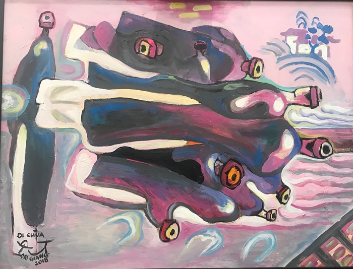 Tác phẩm sơn dầu "Đi chùa"