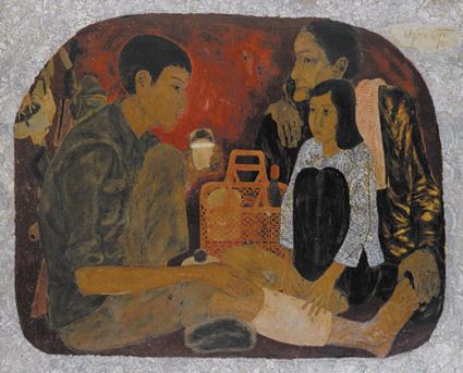 Qua Dốc Miếu ,1974, Sơn mài, Lê Quốc Lộc
