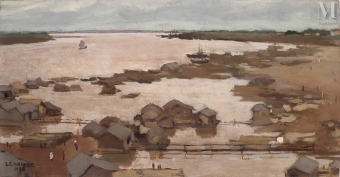 Đôi bờ sông Hồng được vẽ bằng chất liệu sơn dầu trên canvas, ra đời từ năm 1930, miêu tả cảnh hai bên bờ sông Hồng với những ngôi nhà nổi, tàu thuyền và con người chung quanh. Họa sĩ Lê Văn Đệ lưu lại bút tích, ghi ngày tháng ở góc dưới cùng bên trái của tác phẩm. Theo tài liệu trong văn khố của Victor Tardieu, Viện Lịch sử Nghệ thuật Quốc gia Pháp (INHA), bức tranh đã được trưng bày tại Triển lãm Thuộc địa Paris từ ngày 6.5 - 15.11.1931. Trong bài viết Mỹ thuật tại Triển lãm Thuộc địa, Kỷ nguyên Angkor ra ngày 1.9.1931, nhà báo Adolphe Tabarant nhận xét Đôi bờ sông Hồng là “sự hòa hợp giữa phong cách khắc gỗ Nhật Bản và chủ nghĩa Hậu ấn tượng”.