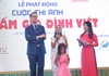 Ca sĩ Đoan Trang hát trong lễ phát động cuộc thi ảnh về “Mái ấm gia đình Việt”