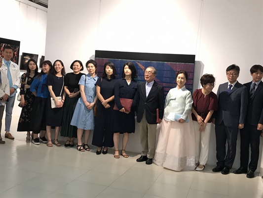 Các nghệ sĩ Hàn Quốc chụp ảnh giao lưu tại triển lãm