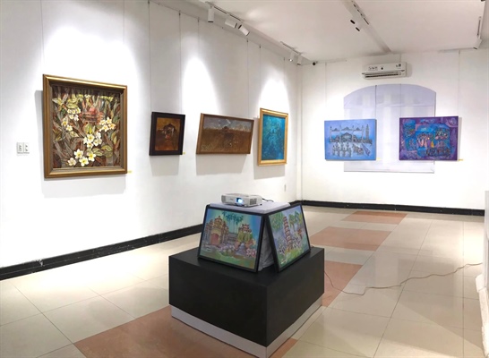Một góc không gian triển lãm "Di sản Cố đô Huế qua góc nhìn hội họa" tại Trung tâm Nghệ thuật Điềm Phùng Thị