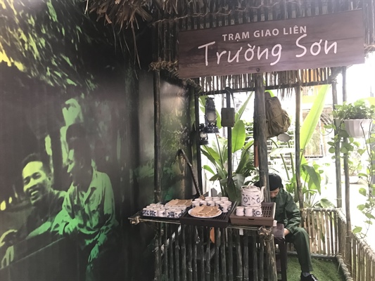Điểm nhấn của trưng bày được tạo dựng từ những hình ảnh, biểu tượng đi cùng năm tháng. Đó là chiếc mũ cối đặt ngay ngắn trên trang sách trắng tinh, anh lính tân binh gửi lại ngày lên đường nhập ngũ. Là “Một thoáng Trường Sơn” nơi đại ngàn xanh thẳm, dưới tán cây rừng, cánh võng mắc vội cho phút chợp mắt, ngả lưng nhanh. Hành trang người lính mang theo không chỉ có cây súng trường, balô trĩu nặng, còn có cây đàn ghi-ta. Hình ảnh chiếc xe không kính nhọc nhằn băng qua lửa đạn; người lính dừng nghỉ tại quán lá giữa rừng, nhấp một chén trà xanh, ăn một thanh kẹo lạc, ngân nga câu hát theo tiếng đàn bập bùng cũng đủ ấm lòng người lính xa nhà...