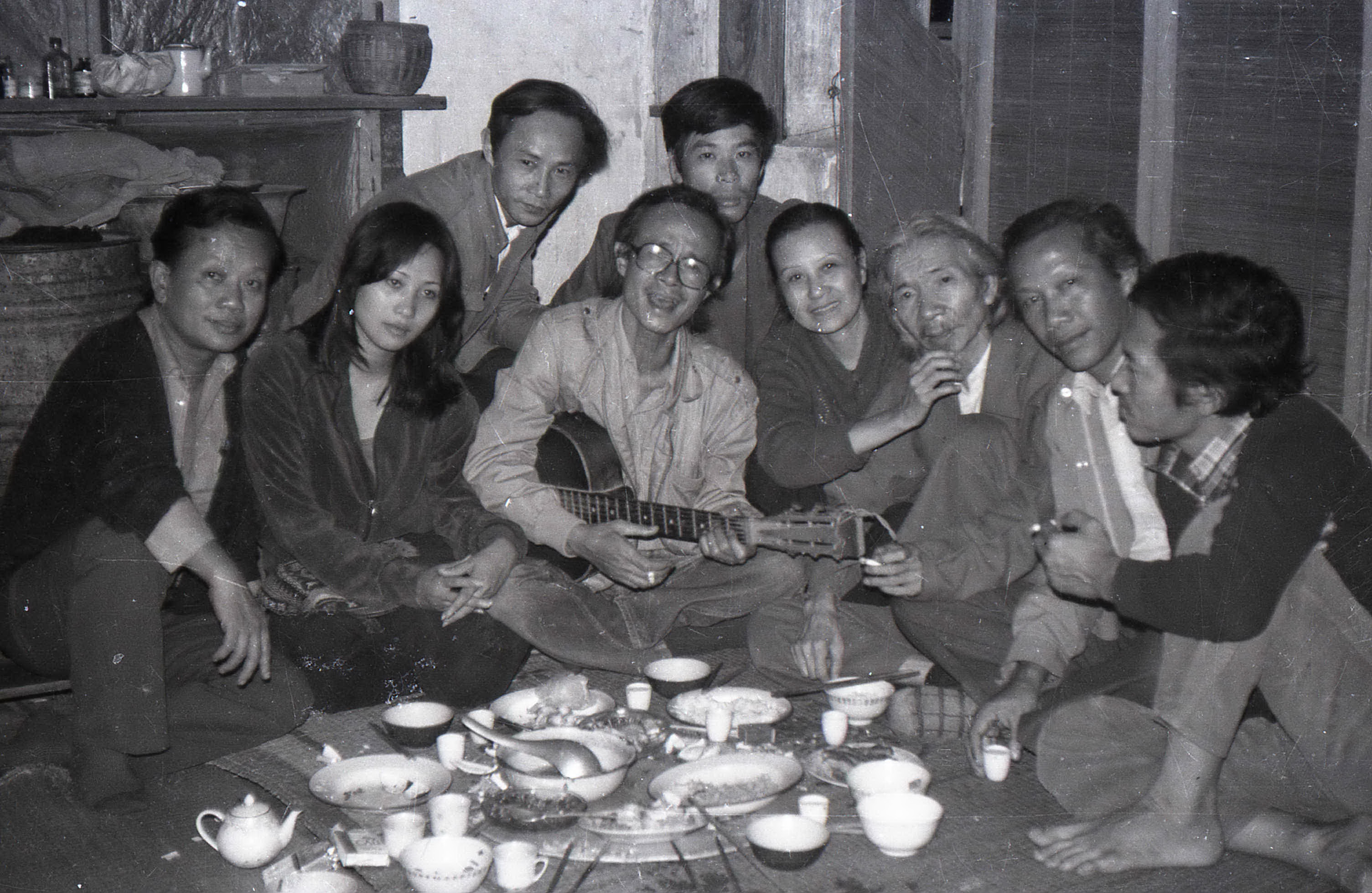 Bức ảnh chụp năm 1983 tại nhà riêng nhạc sĩ Thụy Kha (Hà Nội) có nhạc sĩ Trịnh Công Sơn, nhạc sĩ Nguyễn Thụy Kha (đứng sau), vợ chồng nhạc sĩ Văn Cao...