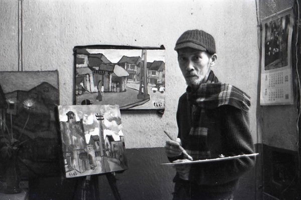 Họa sĩ Bùi Xuân Phái tại xưởng vẽ ở nhà riêng trên phố Thuốc Bắc (Hà Nội) qua ống kính Hà Tường
