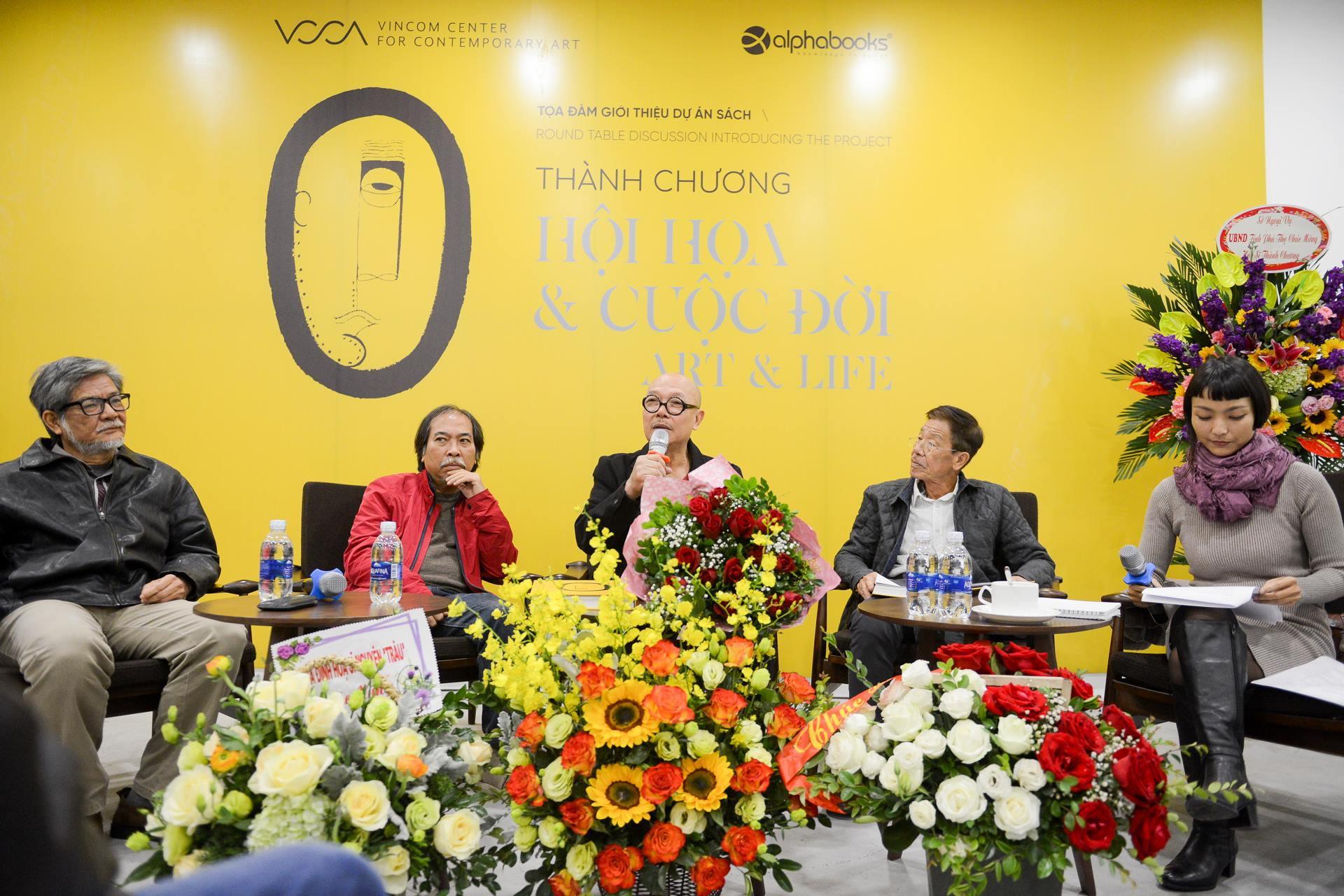 “Sung sướng và áy náy là cảm xúc của tôi lúc này”, họa sĩ Thành Chương mở đầu câu chuyện - “Trung tâm Nghệ thuật đương đại Vincom VCCA đã dành trọn khán phòng lớn nhất của mình cho buổi ra mắt dự án sách nhưng cũng không đủ chỗ vì khách quá đông, dù đã dự tính. Rất rất nhiều bạn bè, đồng nghiệp từ Hải Phòng, Ninh Bình, Thanh Hóa, Huế, Quy Nhơn, Sài Gòn... không quản đường xa về tham dự. Có bạn huỷ cả chuyến bay để ở lại dự sự kiện... Điều này đã khiến cho tôi quá hạnh phúc”.