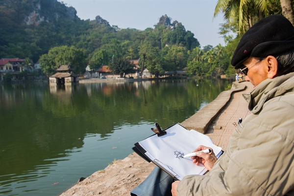 Họa sĩ, NNND Chu Mạnh Chấn luôn dành trọn niềm đam mê trong từng bức vẽ