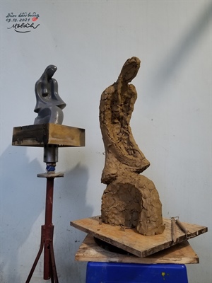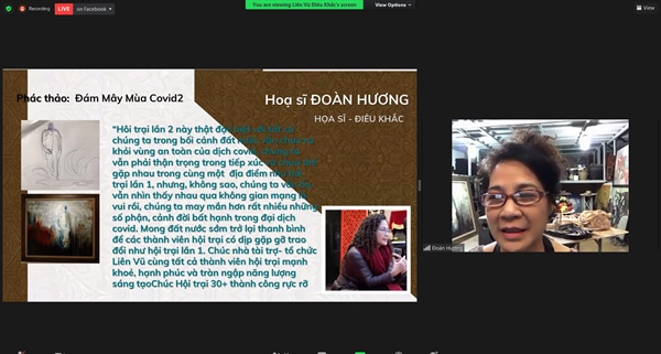Nhà điêu khắc Nguyễn Xuân Thành chia sẻ: Vượt qua sự ngăn cách tạm thời của thực tại, vượt lên hoàn cảnh khó khăn chung hiện nay, với sự ham mê yêu nghề và khát khao sáng tạo, các nghệ sĩ đã tìm đến để cùng nhau chia sẻ niềm vui trong bầu không khí sáng tạo nghệ thuật, cho dù là chỉ gặp nhau trên không gian mạng của thời @.