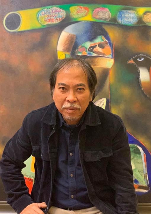 Nhà thơ Nguyễn Quang Thiều bên tác phẩm hội họa của mình