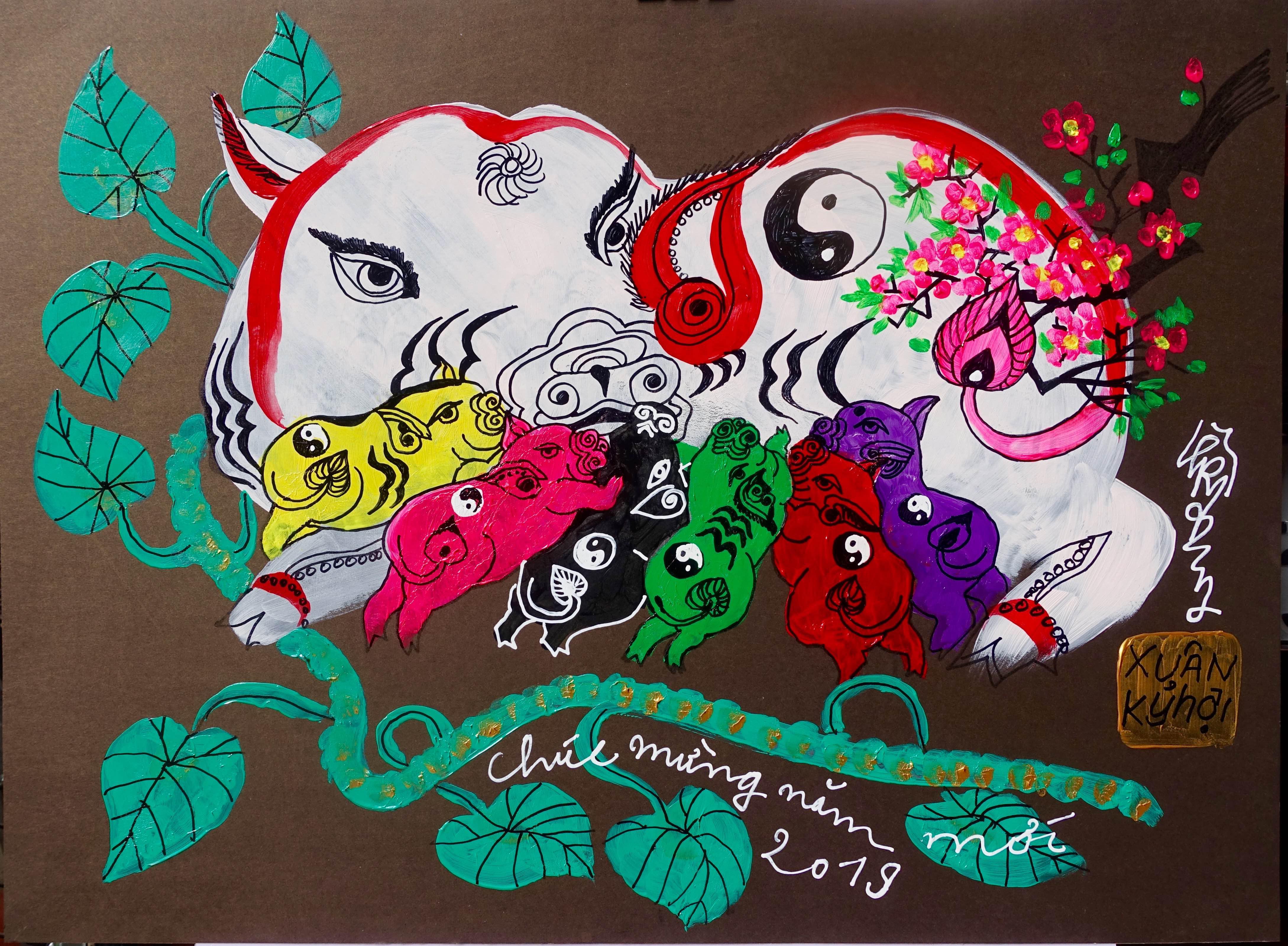 Ngắm tranh Tết Kỷ Hợi của các họa sĩ đương đại