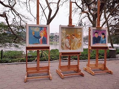 ![]() Ba tác phẩm của họa sĩ Lê Đức Tùng Tại Không gian Văn hóa Việt, 16 Lê Thái Tổ, Hà Nội đang trưng bày ba bức tranh về tình hữu nghị Việt Nam – Triều Tiên và chân dung hai nhà lãnh đạo Mỹ - Triều Tiên của họa sĩ Lê Đức Tùng. Trong đó, một tác phẩm sơn dầu được vẽ từ một tư liệu lịch sử là bức ảnh về cuộc gặp gỡ giữa Chủ tịch Hồ Chí Minh và Chủ tịch Triều Tiên Kim Nhật Thành (1957). Hai bức vẽ còn lại là hai bức chân dung Tổng thống Mỹ Donald Trump và Chủ tịch Triều Tiên Kim Jong Un. Họa sĩ Lê Đức Tùng cho biết: “Sự kiện Hội nghị Thượng đỉnh Mỹ - Triều Tiên diễn ra tại Hà Nội rất đặc biệt nên tôi đã vẽ ba tác phẩm với niềm xúc động pha lẫn tự hào. Chính cảm xúc đó đã thúc đẩy tôi hoàn thành tác phẩm chỉ trong vòng 10 ngày”. Họa sĩ Lê Đức Tùng cho biết thêm, anh đã vẽ Bác Hồ một số lần, nhưng khi vẽ bức hình Bác Hồ nắm tay Chủ tịch Kim Nhật Thành, đó là cái nắm tay rất chặt, mang niềm vui và sự hứng khởi. Điểm nhấn của bức tranh là hoa sen của Việt Nam và hoa mộc lan – quốc hoa của Triều Tiên thể hiện cho tình hữu nghị giữa hai nước. HIỂU MINH |