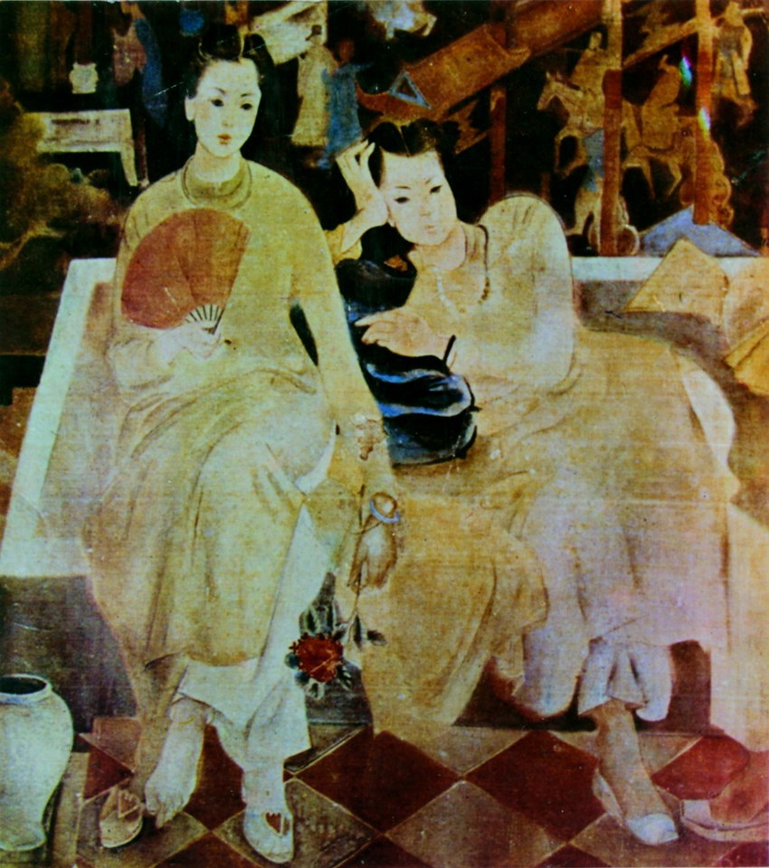 Tranh lụa “Hai cô gái trước bình phong” của Bảo tàng Mỹ thuật VN