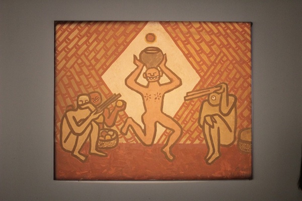 Một tác phẩm bằng chất liệu màu đất của họa sĩ Nguyễn Đức Phương trong triển lãm