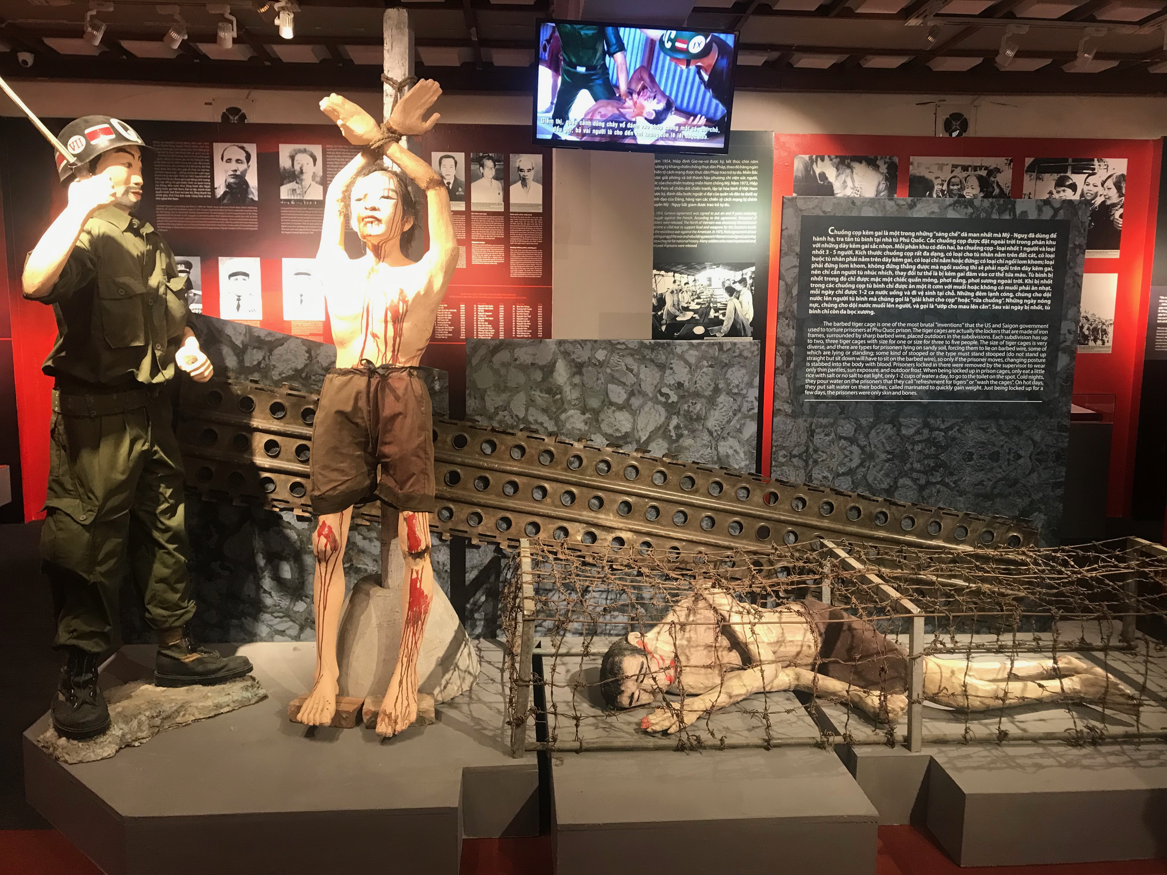 Nhiều hiện vật về các hình thức tra tấn, giết hại tù nhân như thời trung cổ đã được trưng bày như: đục răng, bẻ răng, dội nước sôi, đóng đinh, gõ thùng, nhốt chuồng cọp, đánh đập tù nhân bằng vồ sầu đời, gậy biệt ly, roi cá đuối; cưa chân không gây mê…, khiến nhiều tù binh đau đớn và mất mạng. Nhiều đồng chí đã anh dũng hi sinh sau các đòn tra tấn của địch như: Anh hùng LLVTND Nguyễn Đình Xô (Bắc Ninh), liệt sĩ Đặng Hồng Sơn (Hà Nội)… Nhiều người bị thương tật vĩnh viễn như: đồng chí Cao Bá Trác (Sóc Sơn, Hà Nội); Thiếu tá, Anh hùng LLVTND Nguyễn Văn Thương (Tây Ninh); đồng chí Nguyễn Văn Tằng (Vụ Bản, Nam Định); đồng chí Nguyễn Trọng Lượng (Tĩnh Gia, Thanh Hóa)…