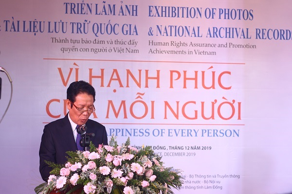 Phát biểu khai mạc tại triển lãm, Thứ trưởng Bộ Thông tin và Truyền thông Hoàng Vĩnh Bảo, Trưởng Ban chỉ đạo triển lãm nhấn mạnh: Đây là lần đầu tiên triển lãm được tổ chức tại Việt Nam, là hoạt động trong khuôn khổ Đề án nâng cao hiệu quả công tác tuyên truyền về quyền con người ở Việt Nam của Chính phủ; Bộ tư liệu được xây dựng, thẩm định, chú thích bằng tiếng Việt và tiếng Anh, sau khi được triển lãm, trưng bày trong nước năm 2019 sẽ tiếp tục trưng bày ở nước ngoài trong các năm tiếp theo.