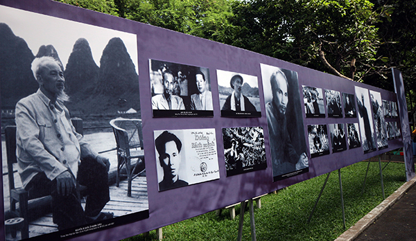 Một góc triển lãm hình ảnh về Bác trong khuôn viên Thư viện