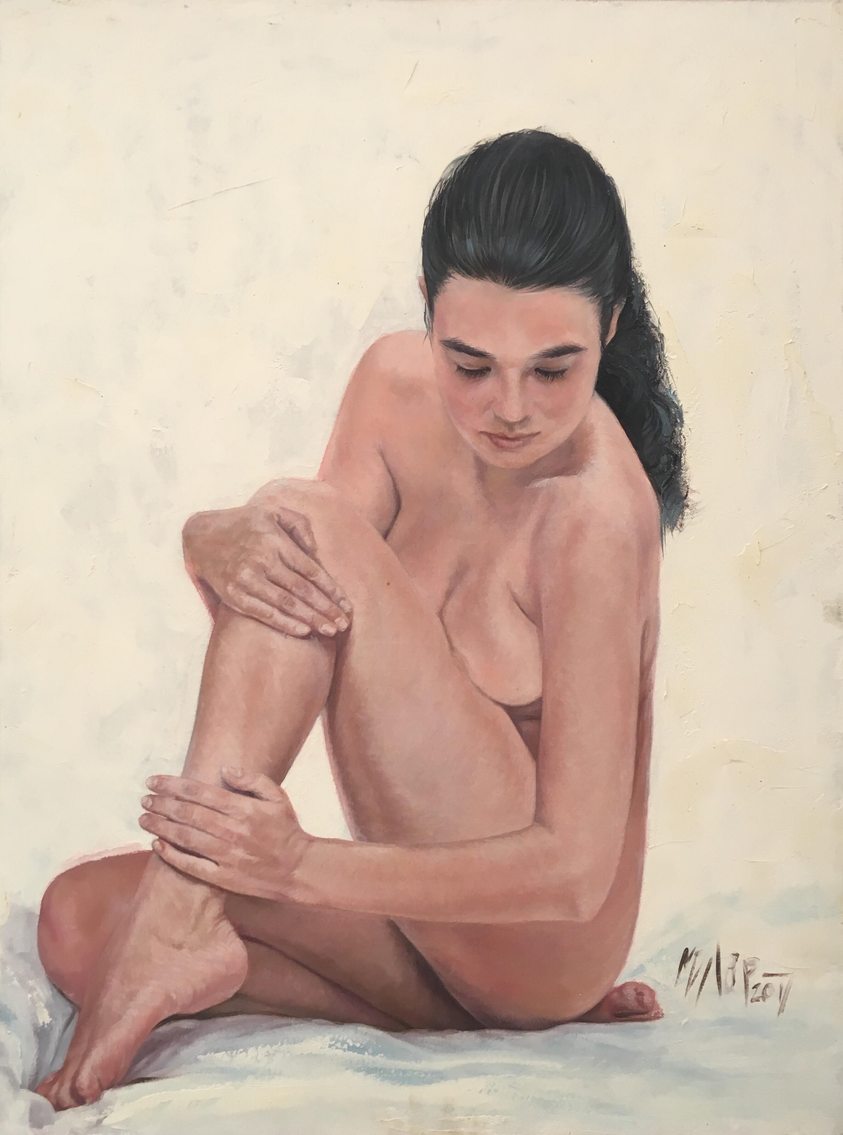 Với bức sơn dầu Đêm êm đềm, họa sĩ Nguyễn Đình Hợp tiết lộ: "Đây là một trong những bức tranh lành nhất, kín đáo nhất, vẽ trong thời gian ngắn nhất khi làm phóng sự về tranh nude”.
