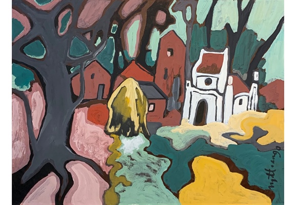 Nếu ông hay bắt đầu một bài hát với một câu văn thật giản dị như một câu nói thường ngày, kiểu như: “Một chiều mùa hè, gặp nhau trên bến cảng. Ta chia tay nhau, trong lòng bao lưu luyến”, thì ông cũng hay bắt đầu một bức tranh với một cấu tứ giản dị tưởng như đã quen thuộc lắm, quen tới mức sáo cũ, chẳng hạn: những con đường làng- những gốc đa- những cái cổng; những mảng ruộng- những ngôi nhà- những đống rơm; mái chùa cổ- mặt trăng; hoặc thiếu nữ- hoa- lá- cây...