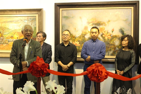 Họa sĩ Trần Khánh Chương, Chủ tịch Hội Mỹ thuật Việt Nam cùng nhóm tác giả cắt băng khai mạc Triển lãm