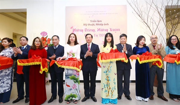 VHO- Sáng 31.1 tại Nhà triển lãm 29 Hàng Bài, Hà Nội, Cục Mỹ thuật, Nhiếp ảnh và Triển lãm phối hợp với Bảo tàng Mỹ thuật Việt Nam (Bộ VHTTDL) tổ chức khai mạc triển lãm “Mừng Đảng, mừng Xuân Canh Tý 2020”, nhân kỷ niệm 90 năm ngày thành lập Đảng (3.2.1930- 3.2.2020). Thứ trưởng Tạ Quang Đông dự và cắt băng khai mạc triển lãm.