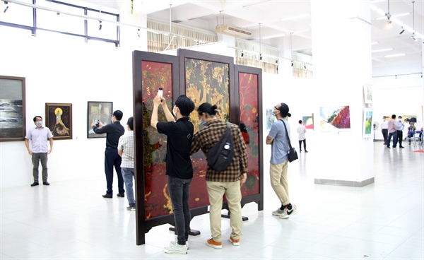 Triển lãm là cơ hội để giảng viên, sinh viên và giới hoạt động mỹ thuật giao lưu, trao đổi kinh nghiệm