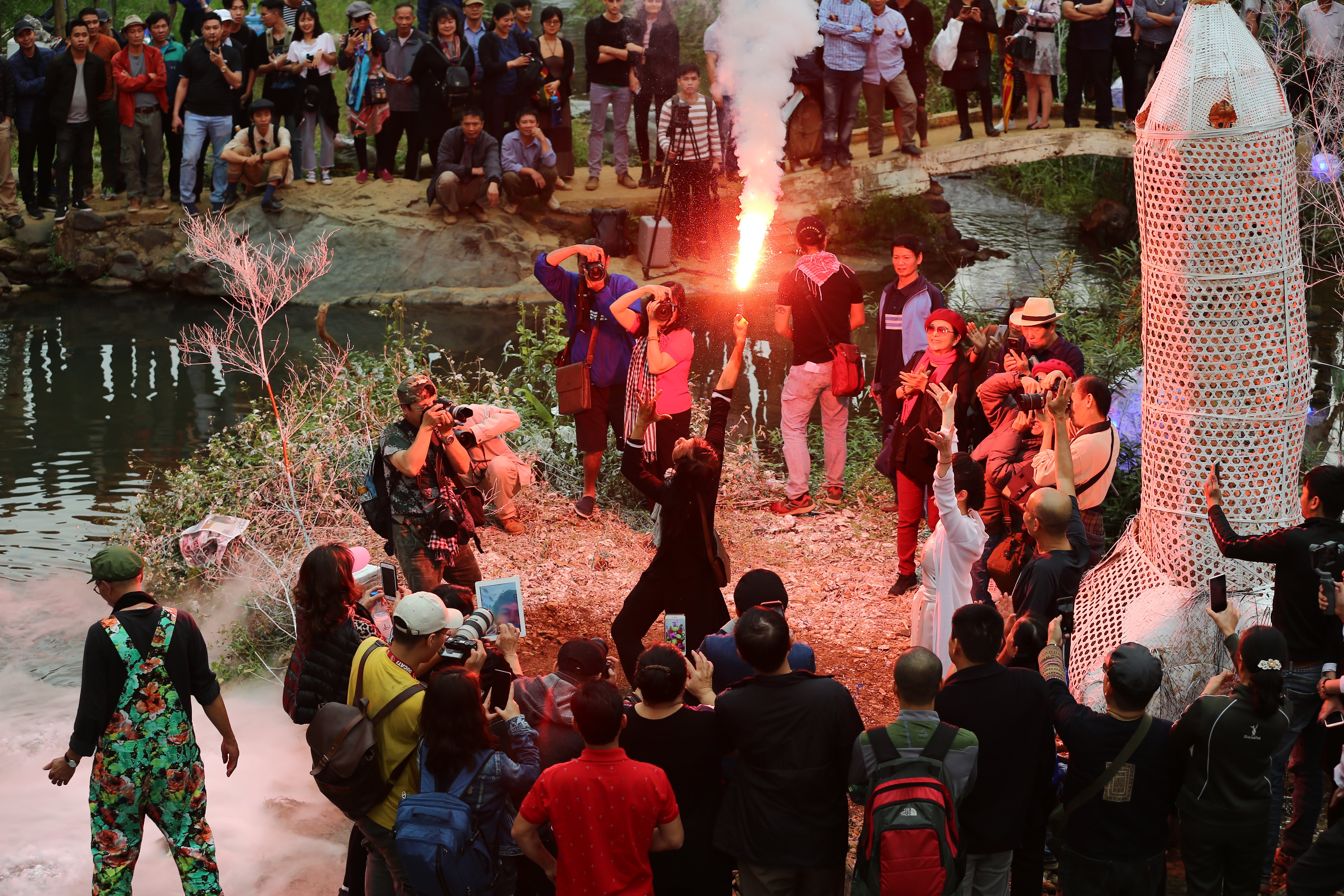 Ở lần Đáo Xuân được cho cuối cùng này, nghệ sĩ Đào Anh Khánh cùng khoảng 300 nghệ sĩ Việt Nam và quốc tế tham gia trình diễn đã mang đến “Gầm Trời” một không khí khá sôi động và náo nhiệt. Trong không gian rộng lớn của thung lũng Gầm Trời, xung quanh được bao bọc bởi những ngọn núi đá sừng sững, các tác phẩm điêu khắc hình trụ với kích thước khổng lồ tạo điểm nhấn nghệ thuật trong cảnh quan thiên nhiên xanh sắc.