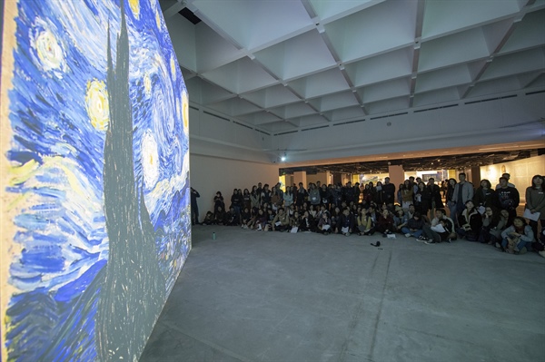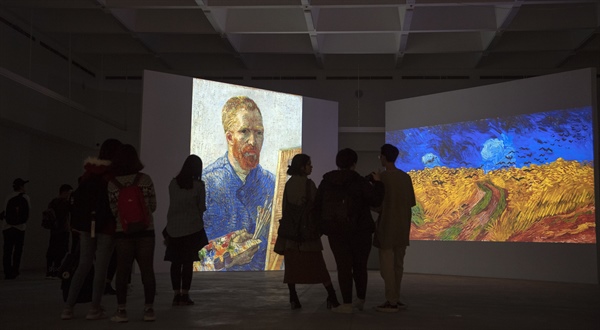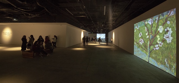 Không gian triển lãm “Ấn tượng phản chiếu: Van Gogh và tác phẩm” tại Trung tâm Nghệ thuật Đương đại Vincom (VCCA). Ảnh: VCCA