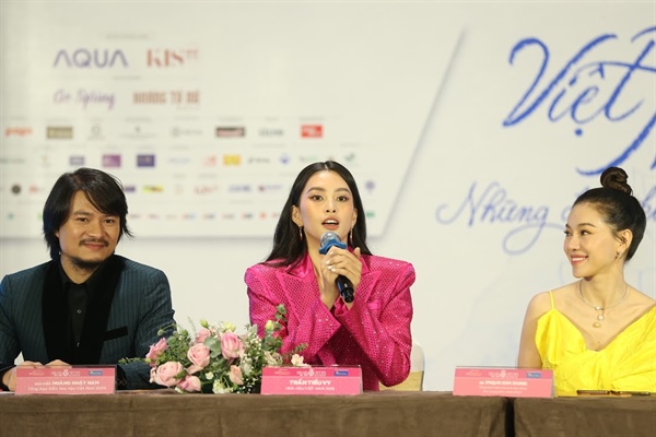 Đạo diễn Hoàng Nhật Nam, Hoa hậu Trần Tiểu Vy và Tổng Giám đốc Công ty Sen vàng Phạm Kim Dung