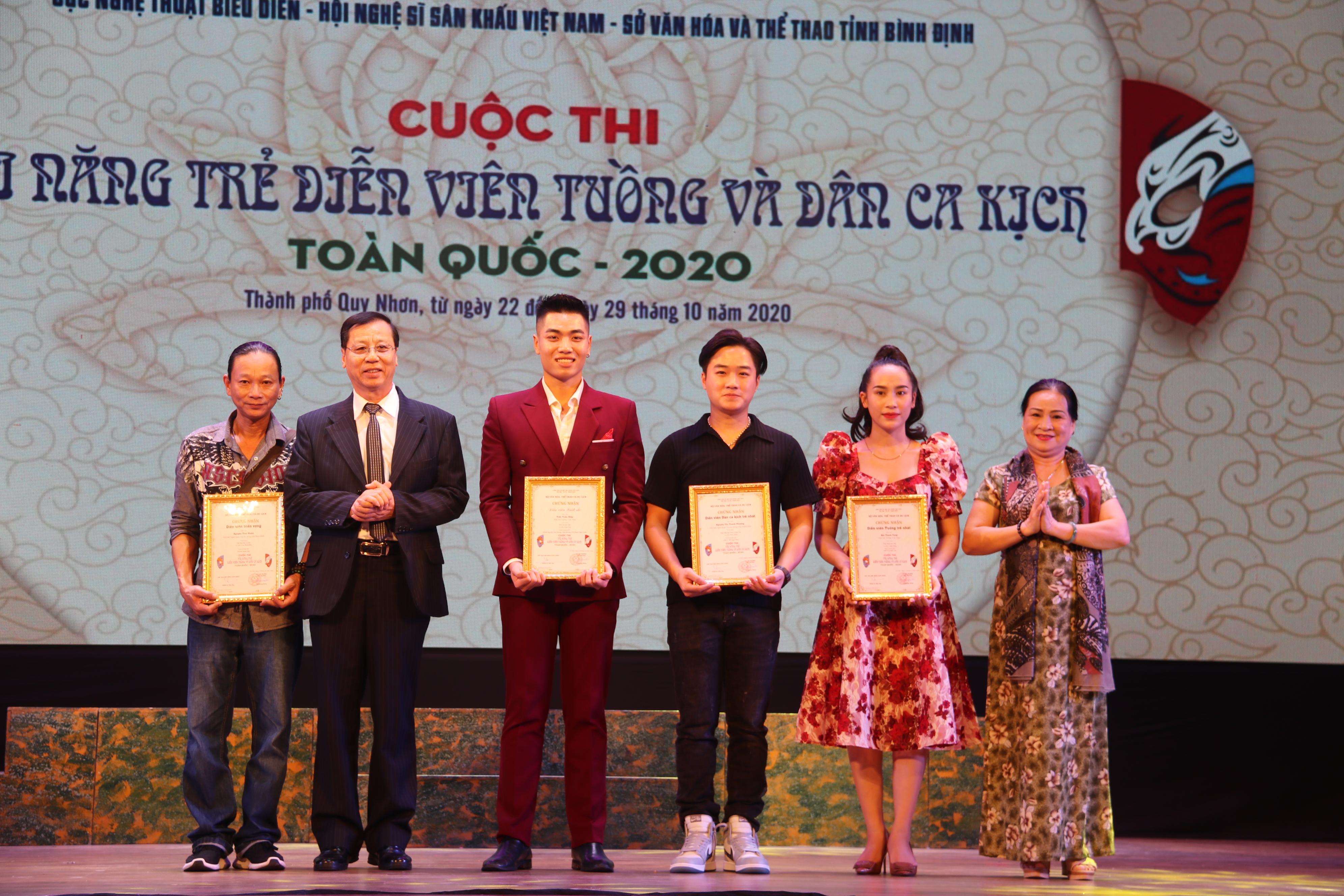 NSND Thu Nhân và NSƯT Hoàng Minh Tâm trao bằng khen cho các diễn viên trẻ triển vọng tại Cuộc thi Tài năng trẻ diễn viên Tuồng và Dân ca kịch toàn quốc 2020