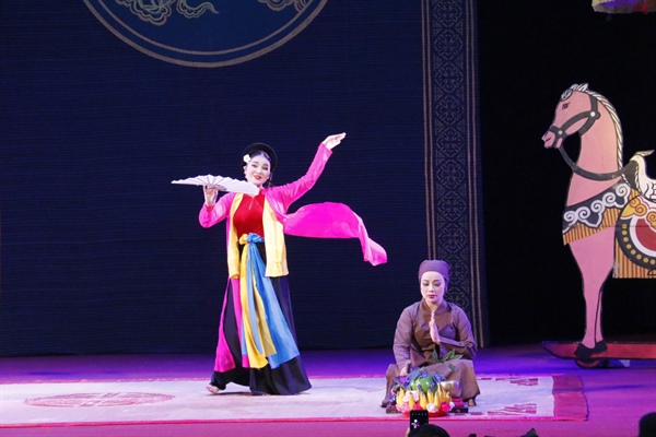 Phó Cục trưởng Cục NTBD Trần Hướng Dương và Phó Giám đốc Sở VHTTDL tỉnh Hà NamTạ Đình Quyền trao HCB cho các diễn viên